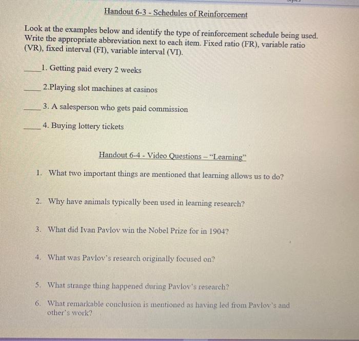 Solved Handout 6 3 Schedules Of Reinforcement Look At The Chegg Com